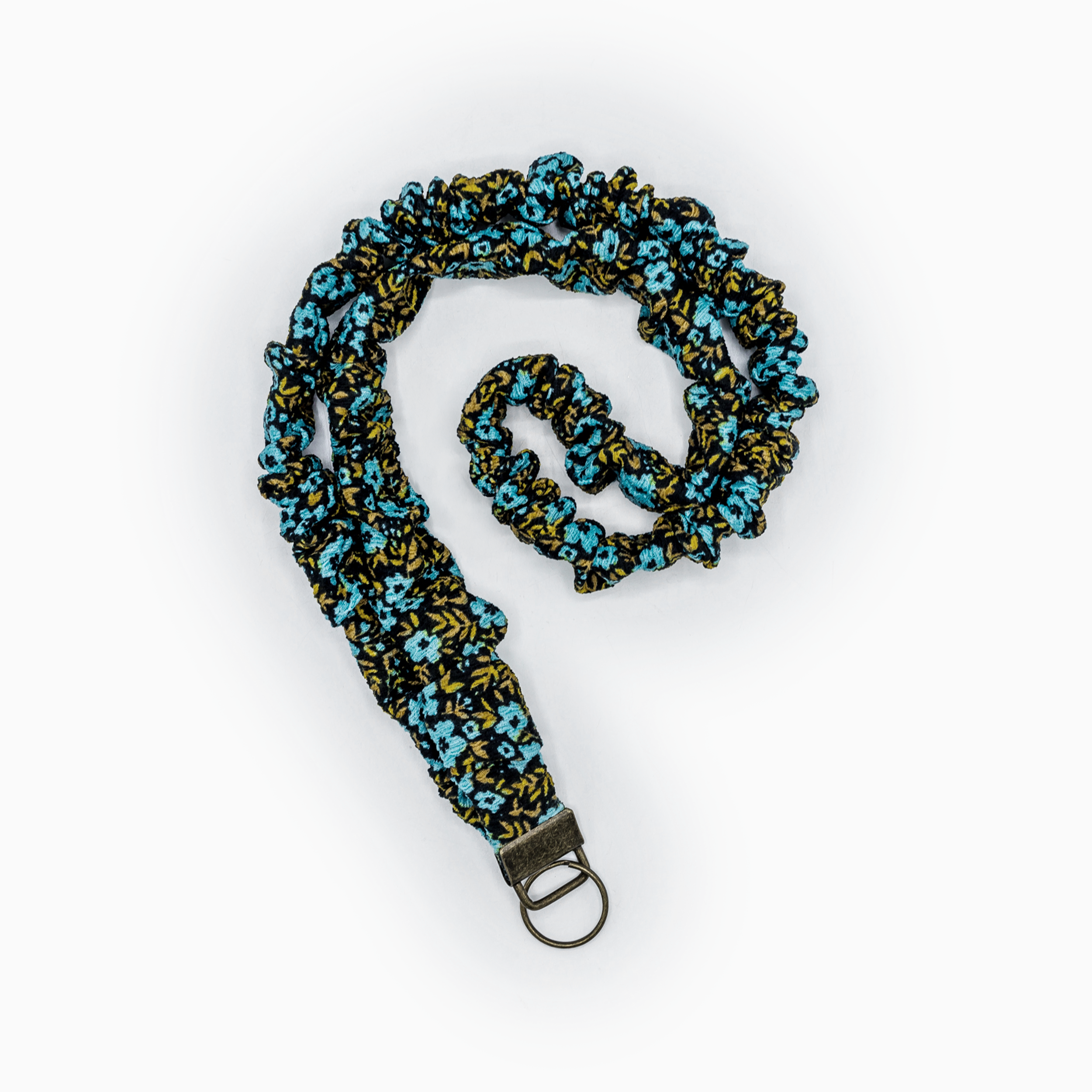 Scrunchie Keycord - Bloemen Blauw